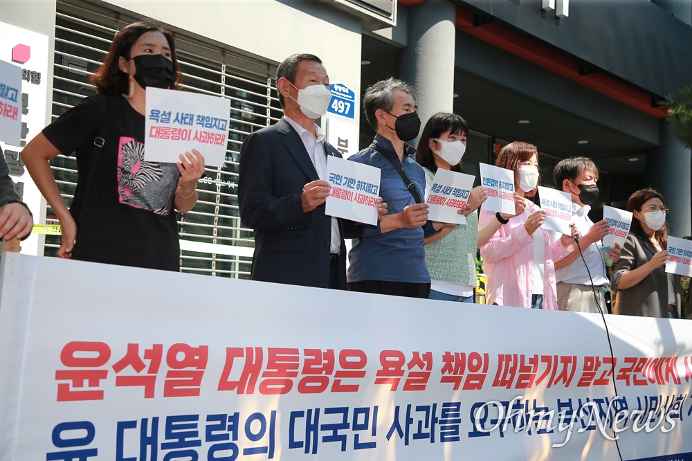 2022년 9월 30일, 국민의힘 부산시당 앞에서 ‘윤 대통령의 대국민 사과를 요구하는 부산지역 시민사회 기자회견’이 개최되었습니다.