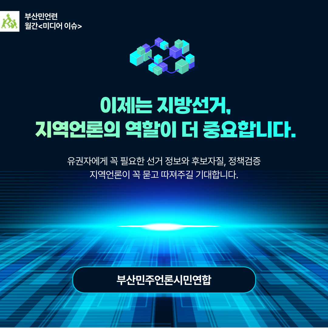 이제는 지방선거다. 지방선거에서 지역언론의 역할이 더욱 중요하다는 것은 굳이 강조하지 않아도 누구나 아는 사실이다. 각 후보들의 공약 실현가능성, 후보자질, 정책검증 등 지역언론이 유권자에게 꼭 필요한 선거 정보를 꼭 묻고 따져주길 기대한다.