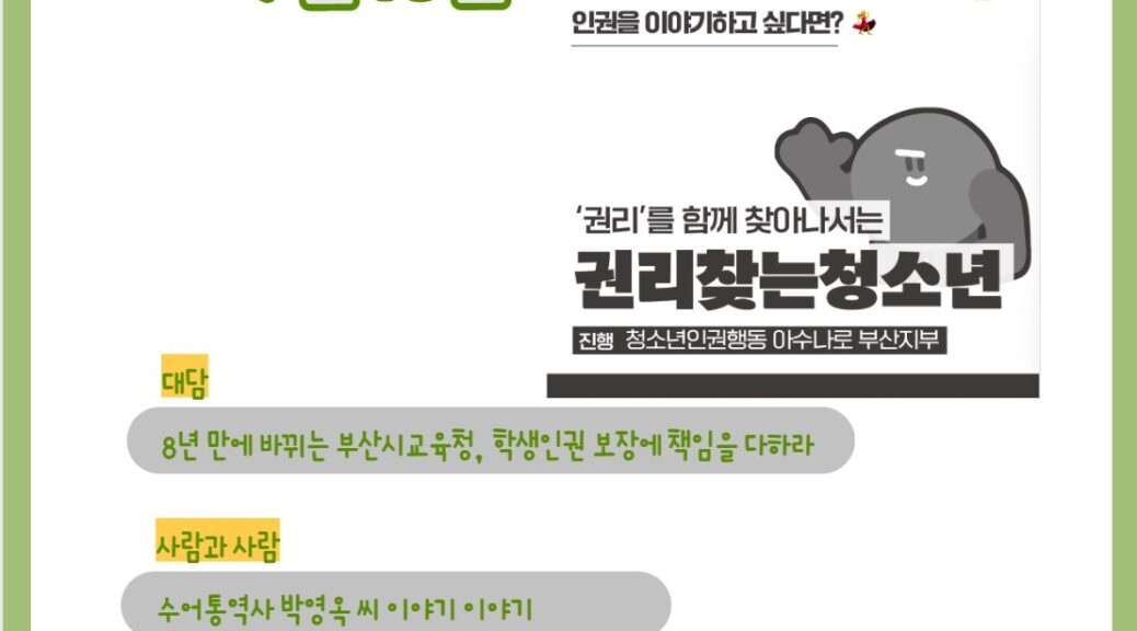 <8년 만에 바뀌는 부산시교육청, 학생인권 보장에 책임을 다하라>