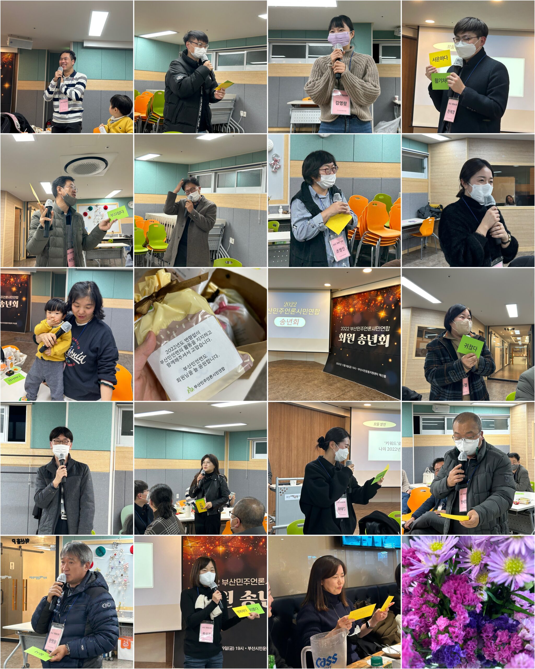 준비된 이야기를 전한 세 분 외 참여한 모든 회원이 미리 나눠준 카드 ‘단어’에 맞춰 회원님들의 2022년을 정리하고, 2023년 계획도 전했습니다. 독립에 신나한 회원, 격려가 부끄럽지 않은 2023년을 열겠다는 회원, 올해는 외롭지 않았다는 회원, 부산민언련이 고마웠다는 회원 등 다양한 이야기가 있는 시간이었습니다.