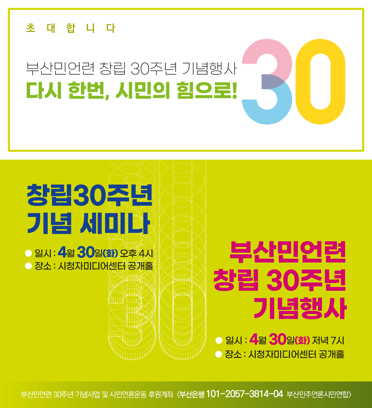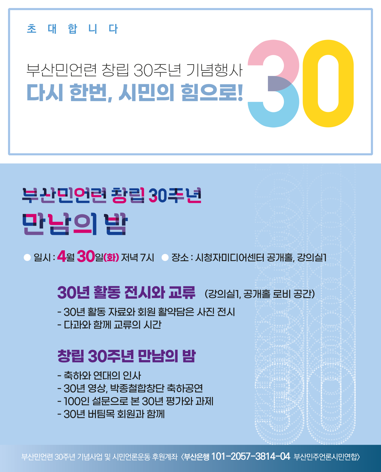 부산민언련 창립 30주년 기념행사에 초대합니다!