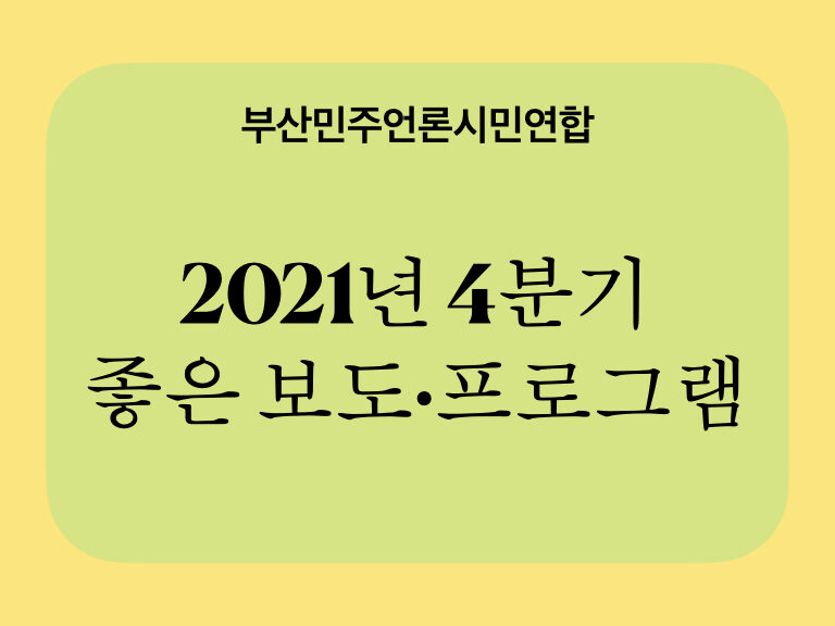 ■ 부산민주언론시민연합(이하 부산민언련)이 선정한 2021년 4분기 좋은 보도·프로그램을 발표합니다.