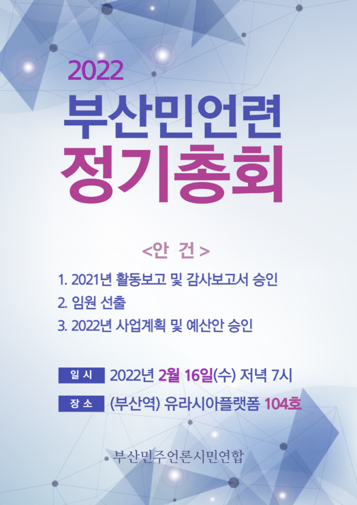 2022년 부산민언련 정기총회를 2월 16일 개최합니다.