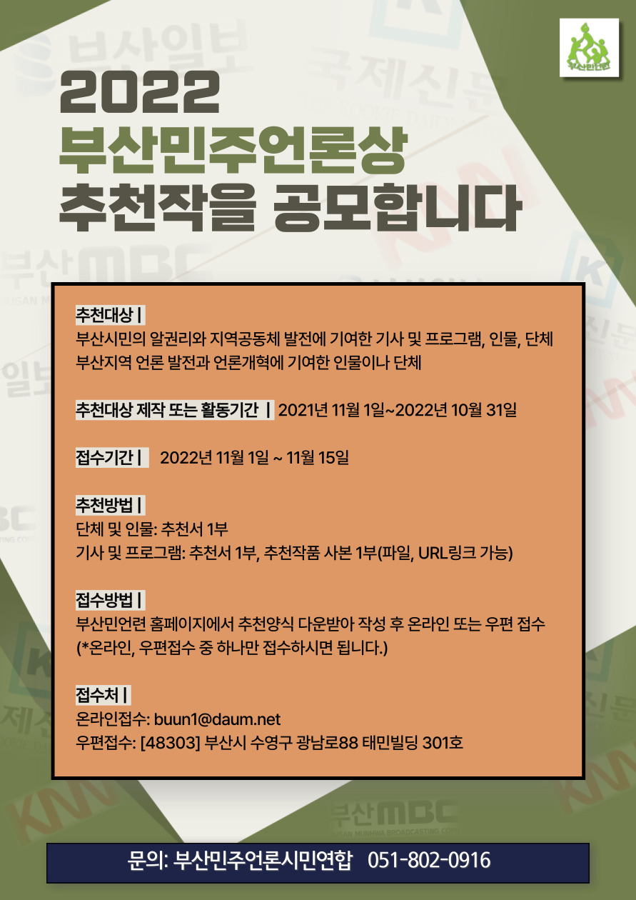 [부산민주언론상] 2022 부산민주언론상 추천작 공모