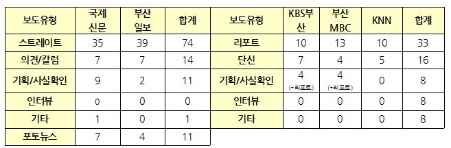 △ <표 2> 기사 유형 (*중복집계 사유)