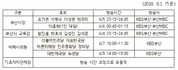– 먼저 방송 시간이 자정에 가까운 시간이나 평일 오전, 낮 시간대로 편성되어 유권자의 시청권을 보장하는데 한계가 있습니다. 이전에 진행된 방송사 자체 토론회보다 불합리한 시간대입니다. 계획대로면 이종혁 부산시장 후보 대담은 자정을 훌쩍 넘겨 진행되어 후보에게도, 유권자에게도 불합리한 편성이라고 할 수 있습니다. 유권자 시청권을 보장할 수 있는 시간대로 변경을 요청합니다.