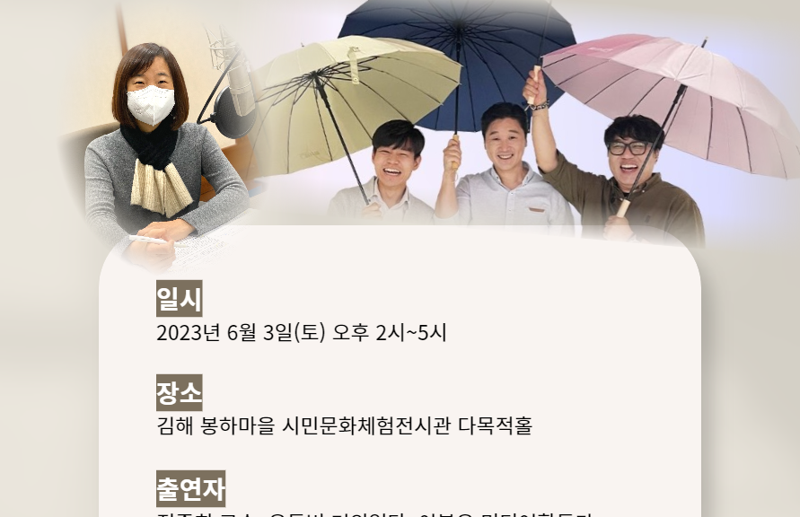 | ⭐일시: 2023년 6월 3일(토) 오후 2시~5시 ⭐장소: 김해 봉하마을 시민문화체험전시관 다목적홀 ⭐출연자: 정준희 해시티비 출연자(정준희 교수, 유튜버 거의없다, 이봉우 미디어활동가), 복성경 부산민언련 대표 ⭐참여대상: 부산과 경남의 언론에 관심있는 시민 누구나(사전신청자 100명 내외) ⭐접수확인: 회비 납부 확인 후 접수 완료(참가비 1만원) ⭐회비입급 계좌: 101-2057-3814-04 부산은행, (예금주)부산민주언론시민연합 ⭐뒤풀이: 참석 가능한 분들과 함께 야외 정자에서 간단히 소감 나눔(안주+막걸리 제공) ⭐문의처: 부산민언련 사무국 051.802.0916/010-3159-2802 특강 신청하기(클릭) |
