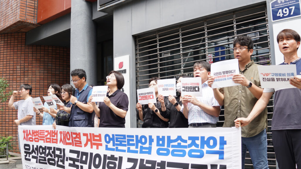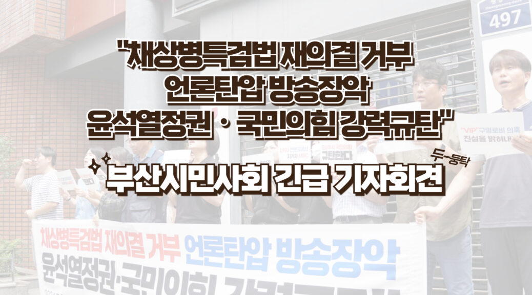 “채상병특검법 재의결 거부 언론탄압 방송장악 윤석열정권・국민의힘 강력규탄”