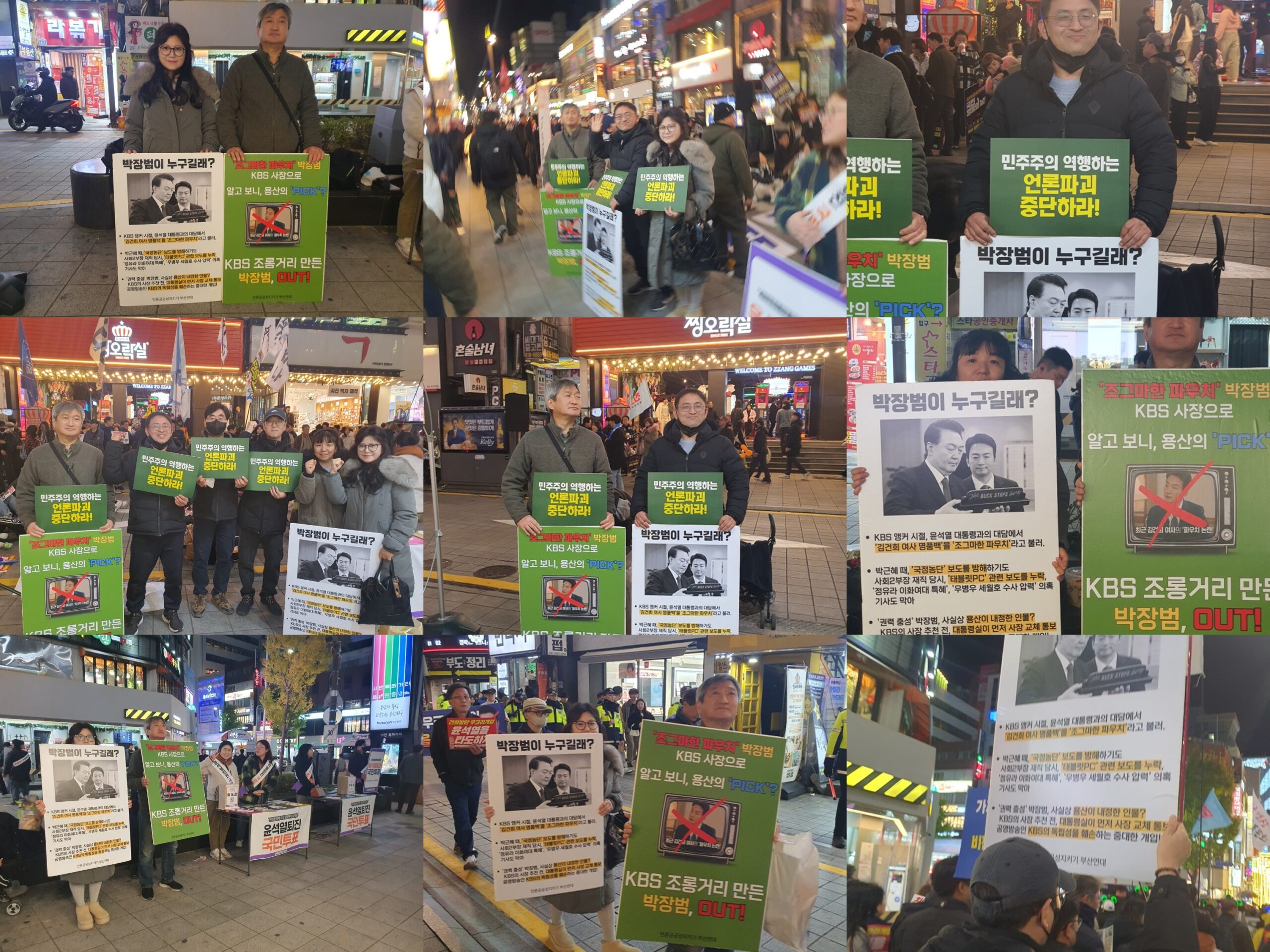 부산민언련 회원들은 11월 30일(토), 서면에서 열린 [윤석열퇴진 부산시민대행진]에서 ‘KBS사장 박장범 OUT’을 외치며, 피켓팅과 행진을 진행했습니다.