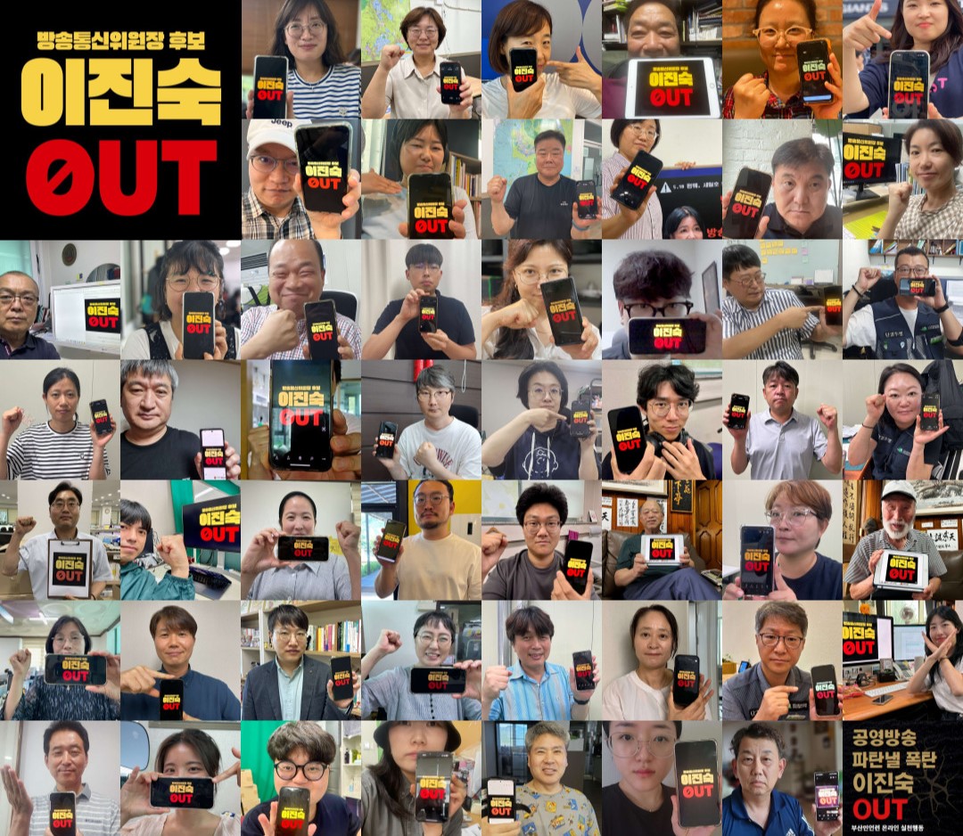 부산민언련은 이진숙 후보의 방통위원장 자진사퇴를 촉구하며, 7월 22일(월)부터 서명운동과 ‘이진숙OUT’ 인증샷 캠페인을 진행했습니다.