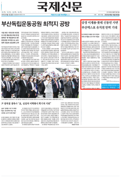 전국언론노동조합과 언론공공성지키기부산연대가 기자회견을 열고 부산시장을 규탄한 다음날에도 지역신문의 1면은 2030부산엑스포로 채워졌다. 국제신문은 <엑스포 역량 시험대 될 ‘BTS 콘서트’>를, 부산일보는 <“BTS 대체복무에 공감대”>를 실었다. 2030부산엑스포와 관련해 지역언론은 일거수일투족을 보도하고 있다. 엑스포 홍보를 위한 이재용 회장의 해외출장이 1면에 실리는가 하면(국제신문, 9/2), 박형준 시장이 엑스포 홍보·협력 요청을 위해 호남에 갔다는 사실이 1면에 실리기도 한다(부산일보, 9/2).