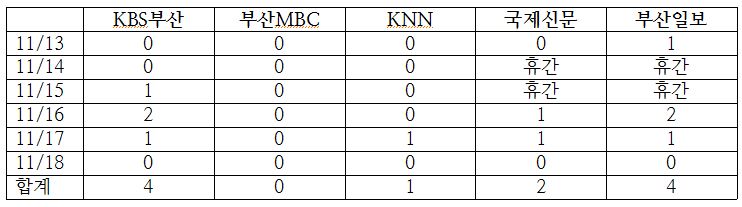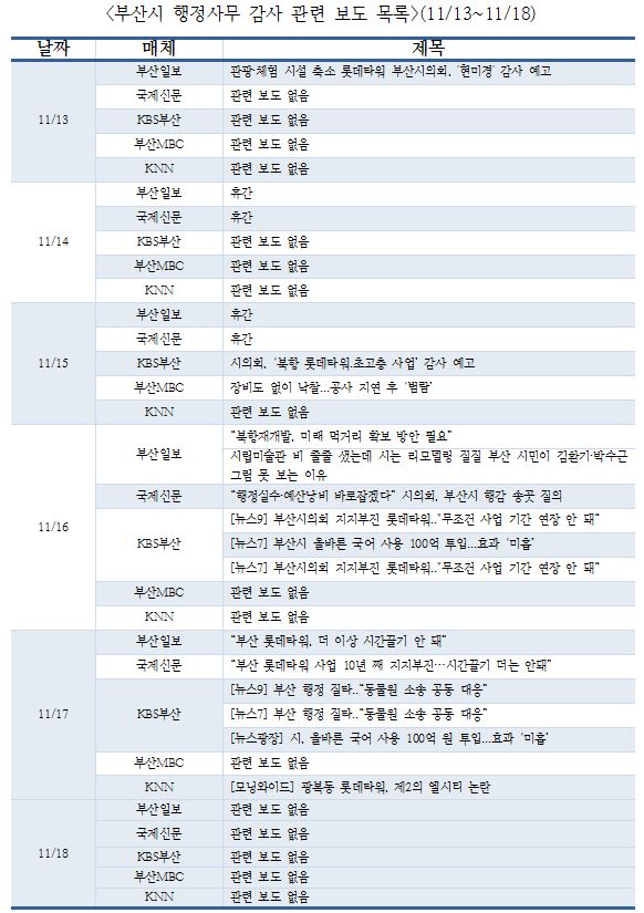 ▲11/13~18 부산시 행정사무 감사 관련 보도 건수