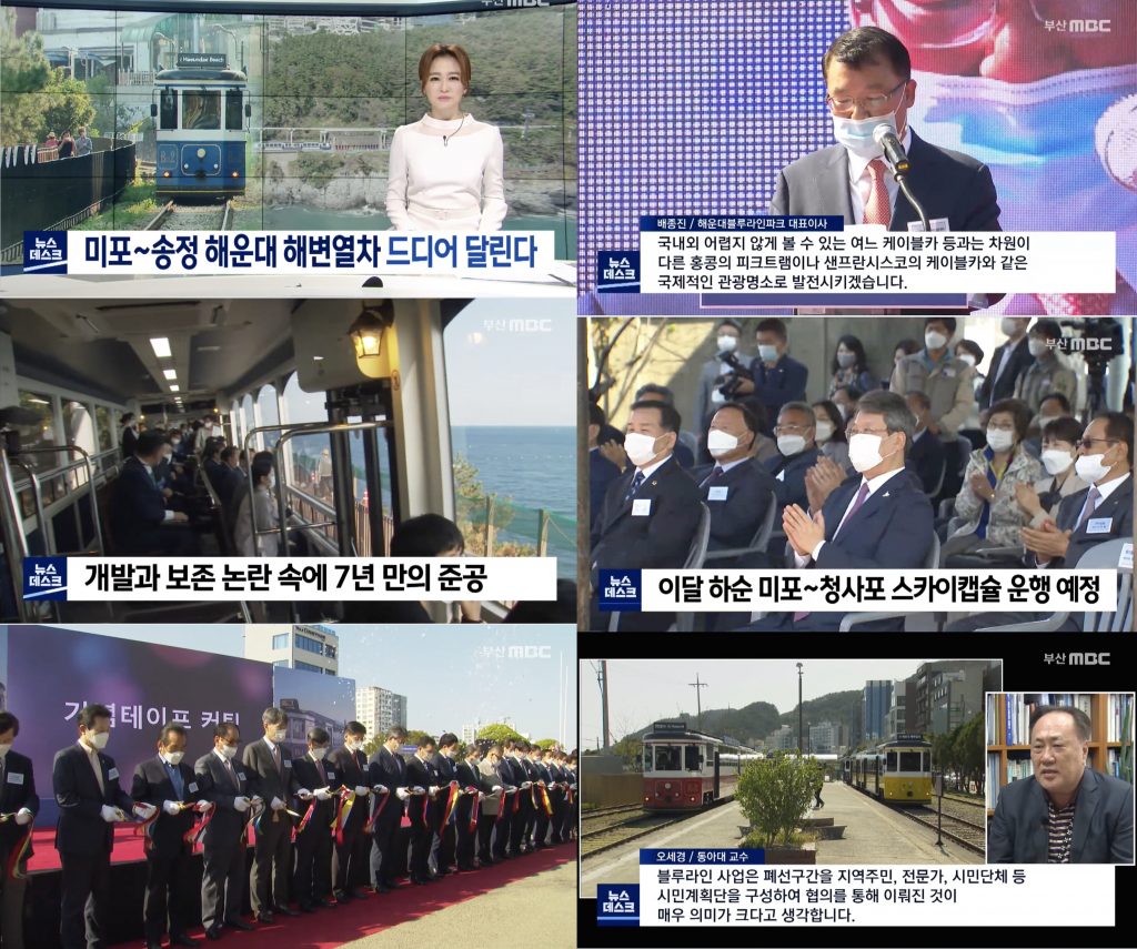 이 소식을 부산MBC <뉴스데스크>는 세 번째 뉴스로 <미포~송정 해운대 해변열차 드디어 달린다>(배범호 기자)를 보도했습니다. 앵커는 “달맞이언덕 아래 천혜의 해안 절경을 감상할 수 있는 부산의 핵심 관광 자원이 될 것으로 기대됩니다.”라는 멘트로 해당 소식을 전했습니다.