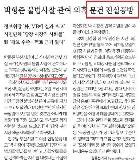 ‘국정원 불법 사찰’ 박형준 시장 연루,