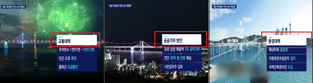 부산MBC는 사업 제안에 따른 논란을 주요하게 보도했습니다. 5월 11일 뉴스데스크에서 <국내 최장 ‘해상 케이블카’ 논란..재점화되나>라는 리포팅을 통해 시민단체의 목소리를 전하며 “해안경관이라는 공공재가 민간의 수익사업으로 이어지는 지점에 대한 반대 목소리도 크다”는 점을 강조했고, 주자대수 확대에 대해서도 교통난을 야기할 수 있다는 우려하는 입장도 소개했습니다.