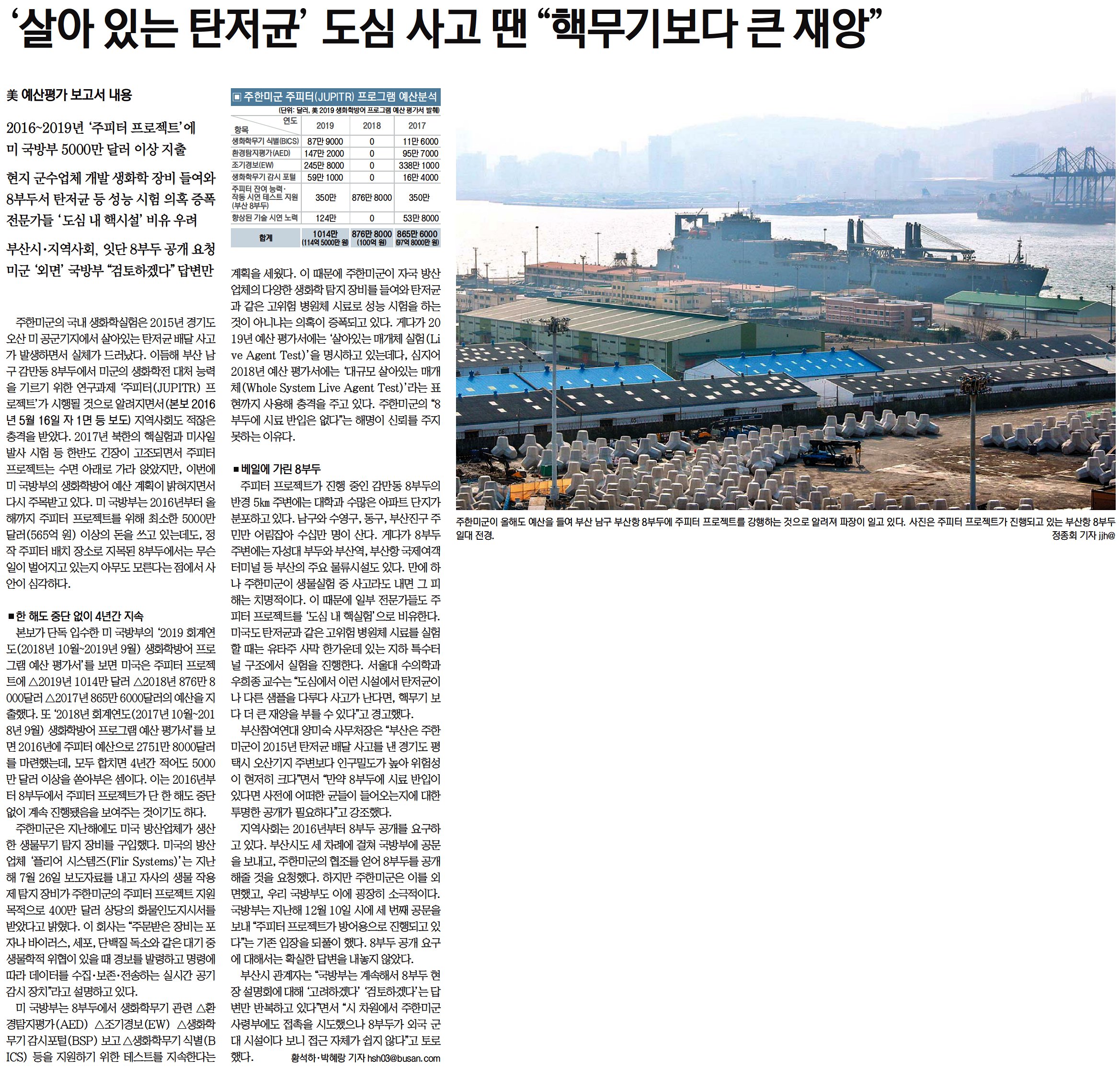 부산일보, 감만8부두 미군기지 생화학무기 실험(주피터 프로젝트)을 확인해