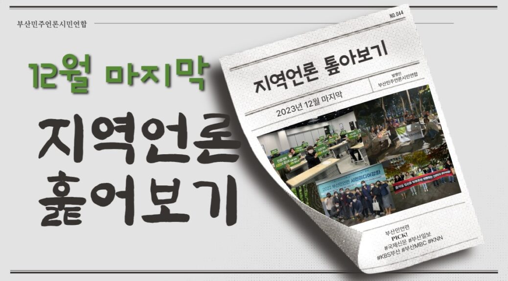 올 한해 부산민언련 <지역언론 훑어보기>로 소통해주신 분들께 감사드립니다. 아울러 2023년 지역민의 알권리와 지역공론장 확장을 위해 애써주신 지역언론인들에게 응원의 말씀을 전하며 2024년에는 권력감시와 지역 현안에 대한 검증에 더 매진해주기를 바랍니다
