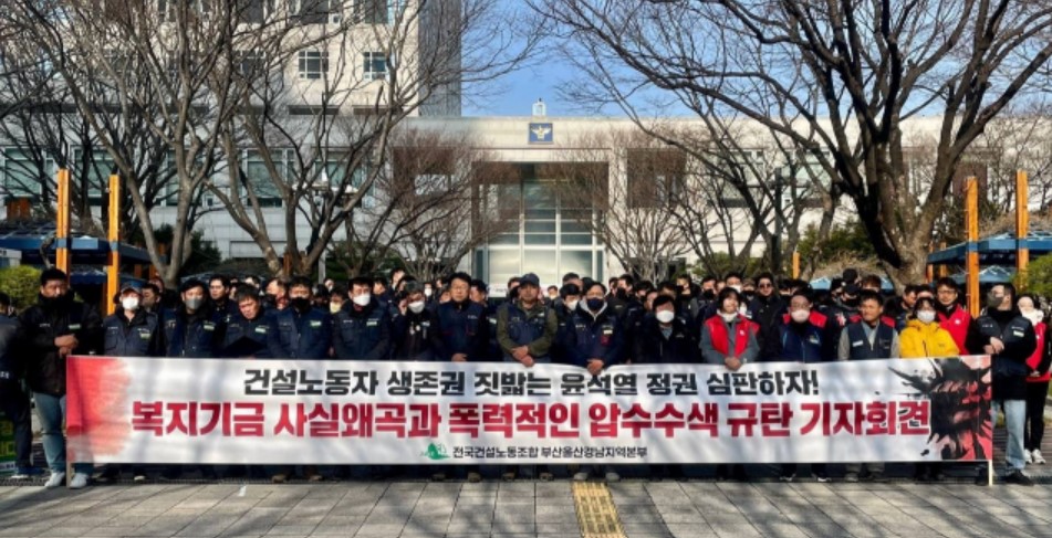 지난 2월 13일, 부산 남부경찰서는 민주노총 부산본부 내 ‘부산건설노조 건설기계지부·레미콘지부’ 사무실을 압수수색했다. 경찰은 콘크리트 제조업체를 상대로 ‘복지기금’을 요구한 부산건설노조 소속 전·현직 간부에게 금품갈취 등의 혐의가 있다고 보고 강제수사에 나선 것이다. 하지만 건설노조는 복지기금은 지난 2020년, 부산시 중재로 노조와 사용자 측이 단체 교섭하는 과정에서 합의한 내용이라며 압수수색이 과도한 노동탄압이라고 반발했다.