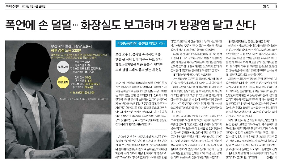국제신문, 비정규직 콜센터 노동자 실태 당사자 목소리와 함께 전해 ?