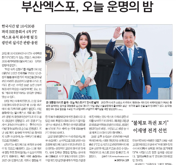 <부산엑스포, 오늘 운명의 밤>(국제신문, 6/20, 1면)