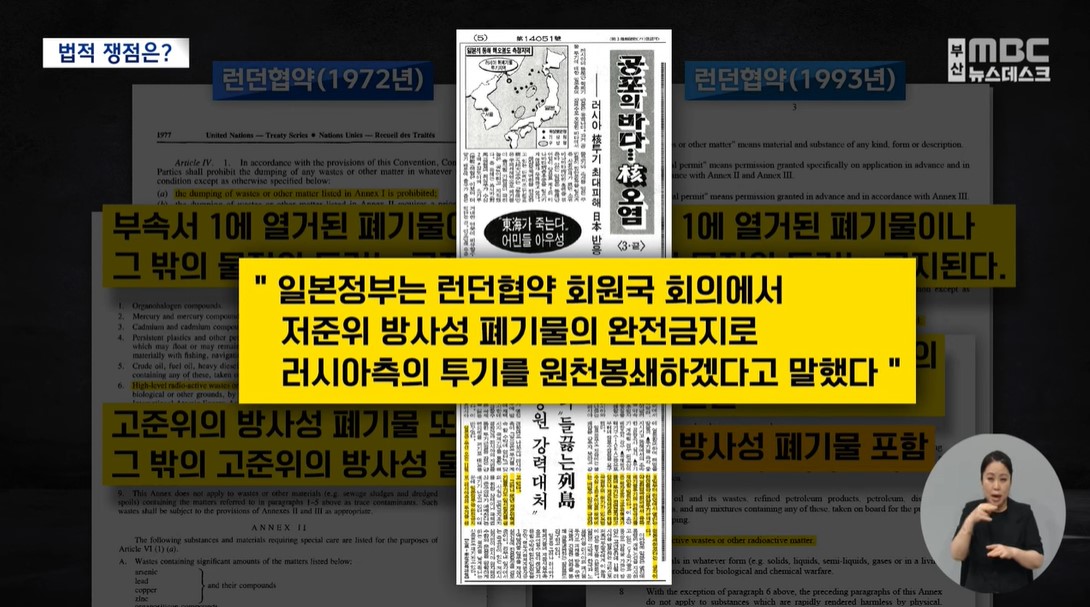 부산MBC도 IAEA와 일본정부에 대한 반대여론에 주목하며, 부산시의 대책이 ‘사후대책’일 뿐이라는 비판목소리를 전했다[<오염수 방류 초읽기..부산 곳곳서 반발>(부산MBC, 7/4), <해산물도 해수욕도 대책은 사후 검사뿐>(부산MBC, 7/4)]. 또 부산지역 시민단체가 도쿄전력을 상대로 2년째 진행 중인 ‘오염수 방류 금지 소송’ 소식을 전하며, 소송의 가장 큰 쟁점인 일본의 런던협약 위반 여부와 1993년 일본이 주도해서 저준위, 고준위 방사성 폐기물을 해양투기 못하도록 개정한 ‘런던의정서’를 아이러니하게 일본이 어기고 있는 점을 상세히 짚었다[<일본, 그땐 피해자 지금은 모른다?>(부산MBC, 7/6), <오염수 방류금지 소송 대리인에게 듣는다>(부산MBC, 7/6)].