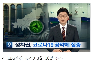 먼저 KBS부산은 3월 16일 <더불어민주당 총선후보들 정부에 1인당 100만 원 재난기본소득 요청>에서 더불어민주당 후보들의 재난기본소득 요청을 단신으로 보도했다. 이어 19일 <정치권, 코로나19 공약에 집중>에서는 각 당의 코로나19 정책을 소개했는데 민주당은 1인당 재난기본소득 100만 원 지급을 내세웠고, 미래통합당은 정부 정책 비판에 집중, 정의당은 민생센터 중심으로 자영업자 및 특수고용노동자에 직접지원을 요구했고, 민중당 초중고생 교직원 마스크 지급을 촉구했다고 전했다. 민주당, 통합당 중심 보도에서 벗어나 다른 정당까지 정책을 중심으로 보도하여 유익했다. 다만 통합당은 정책 보다는 서병수 후보의 정부비판 인터뷰를 그대로 실었는데, 기자가 통합당의 정책을 찾거나 물어 어떤 정책을 가지고 있는지를 알려 주었다면 정책 비교 보도로 더 의미있었을 것 같다.