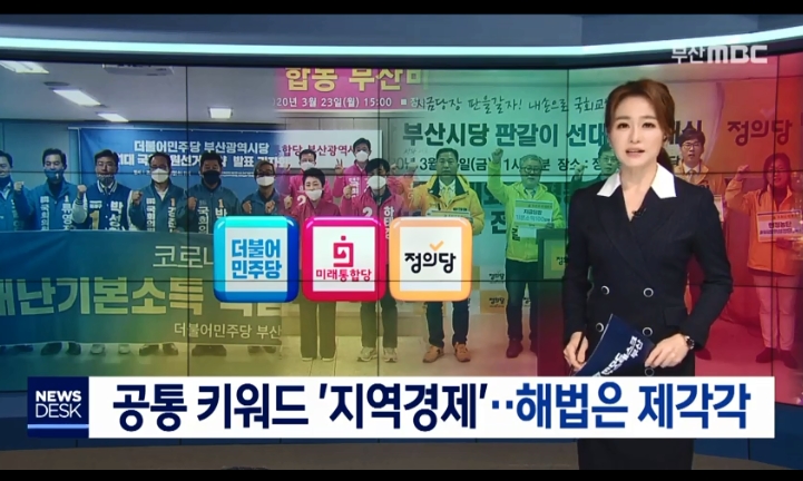 부산MBC는 18개 후보와 정당으로부터 785개 공약을 제출받아 분석했다. 4월 2일 <공통 키워드 ‘지역경제’…해법은 제각각>에서 더불어민주당, 미래통합당, 정의당 부산시당의 공통 공약을 분석했는데, 공통 키워드는 ‘지역 경제 살리기’였지만 해법은 달랐다며 지역화폐 발행, 대기업 유치, 지역재투자법 등 각 당의 해법과 총 필요한 예산도 제시했다. 또 전국유권자 설문조사와 부산지역 시민단체가 제시한 유권자 의제와 교차 분석하여 정당별로 어떻게 반영하고 있는지도 소개했다.
