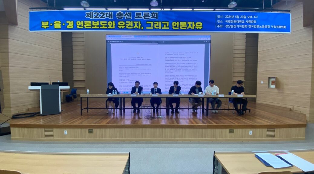 5월 23일에는 경남울산기자협회와 전국언론노조부울경협의회가 공동주최로 22대 부울경 총선보도 평가토론회를 개최했는데요. 부산, 울산, 경남 언론의 제22대 총선보도가 유권들의 후보선택에 얼마나 도움이 됐는지 모니터내용을 살펴보고, 학계와 언론계, 미디어이용자들의 의견을 들어보도 개선점을 찾아보는 시간을 가졌습니다. 그리고 선거방송심의위원회의 올바른 역할과 선방위가 촉발시킨 ‘유권자 알 권리’ 침해 우려도 함께 고민하는 시간이었습니다.