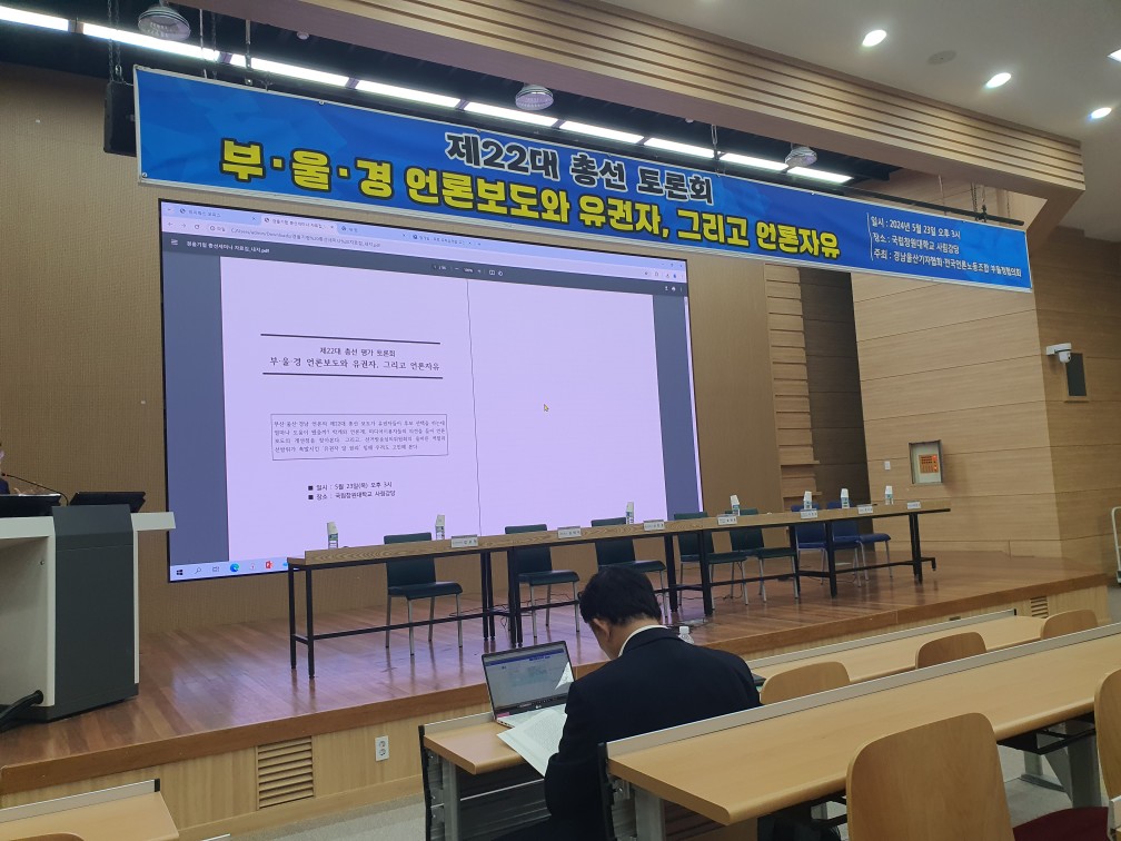 부산민언련은 제22대 국회의원 총선거를 맞아 시민과 함께 하는 총선보도 시민모니터단을 구성해 약 40여일간 부산지역 5개언론(국제신문, 부산일보, KBS부산, 부산MBC, KNN)을 모니터링하여 5개의 총선보도 모니터보고서를 발표했습니다. 총선은 끝났지만 총선보도를 평가하는 다양한 토론회가 5월에 진행되었습니다. 총선보도 평가토론회에 부산민언련 사무국도 토론자로 적극 참여했습니다.