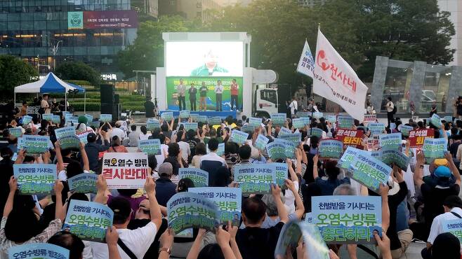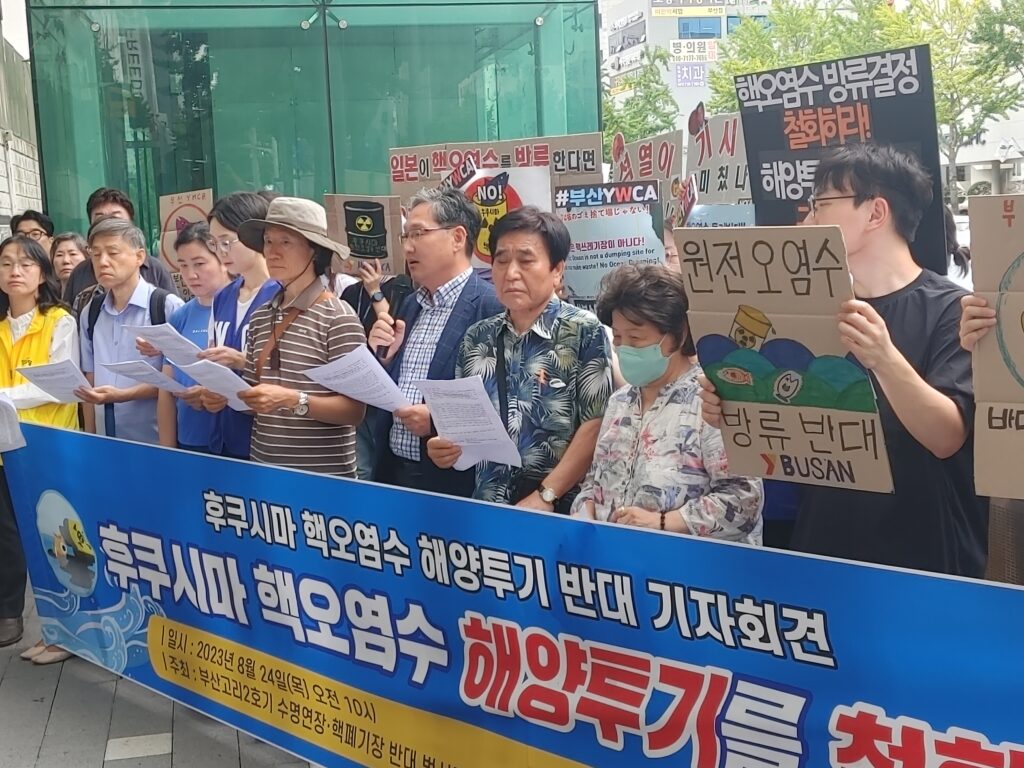 부산지역 시민사회는 일본의 행태는 인류에 대한 핵테러로 규정하며 당장 중단할 것을 요구했습니다. 시민 건강과 경제 타격에도 침묵으로 방조한 윤석열 정부를 규탄하는 목소리도 높였습니다. 7월 11만명의 시민 반대 서명을 받은데 이어, 8월에는 일본항의 방문, 연이은 반대 기자회견과 시민대회 등 다양한 반대 활동을 벌였습니다.