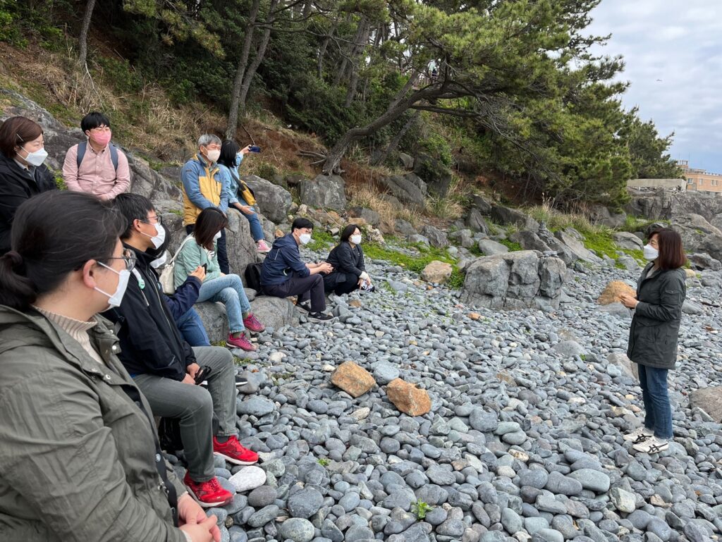 회원 봄소풍에는 복성경 대표를 비롯해 18명의 회원이 참여했습니다. 이번에는 커플, 가족 회원 참여가 세 팀이나 되어 더욱 반가운 시간이었습니다. 해변열차 미포 정거장에서 만나 옛 동해남부선 해변길을 따라 함께 걸었습니다.