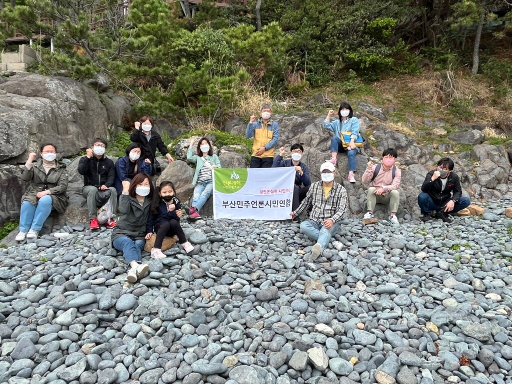 청사포 자갈마당에서 잠시 휴식을 취하며, 한명환 부대표께서 제공한 샌드위치와, 윤영균 회원이 싸온 토마토를 나눠 먹으며 서로 인사나누고, 스물여덟번째 생일을 맞은 부산민언련을 자축하고, 또 1994년 4월 30일 첫마음 그대로 언론개혁에 힘을 보태자 다짐했습니다.
