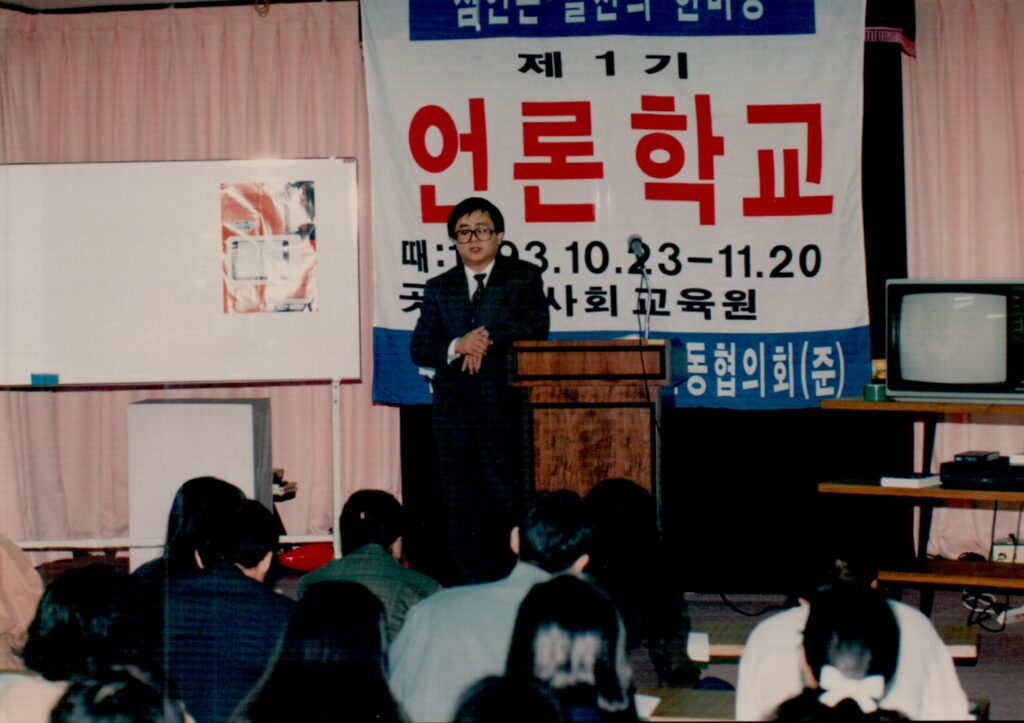 1년 뒤인 1993년 11월에는 이 준비모임이 준비위원회로 확대되면서 본격적인 준비에 들어갔다. 이 준비위원회에서 얼떨결에 내가 당시 동아대 신문방송학과에 계시던 강상현 교수와 함께 공동준비위원장을 맡게 되었다. 나로서는 ‘얼떨결에’라는 표현을 쓸 수밖에 없는 상황이었다. (중략) 하지만 ‘준비위원회’의 대표일 뿐이라는 주위, 특히 이진규 씨의 회유와 강권에 덥석 맡게 되었다. 그 준비위원회 시절부터 언론학교도 개설, 운영하였다. 부산 지역에서 처음으로 이루어진 언론학교에 당시는 수강생들이 상당히 많았었다.