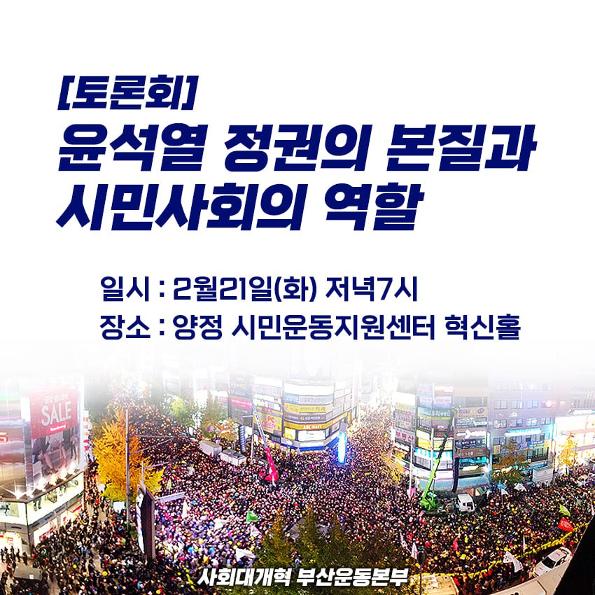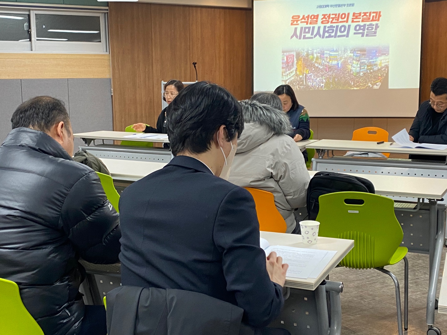 2월 21일(화) 저녁7시, 사회대개혁 부산운동본부 주최로 진행된 <윤석열 정권의 본질과 시민사회의 역할> 토론회에 부산민언련 복성경 대표도 참여하여 현 시기 시민사회의 역할에 대해 고민하는 시간을 가졌습니다.