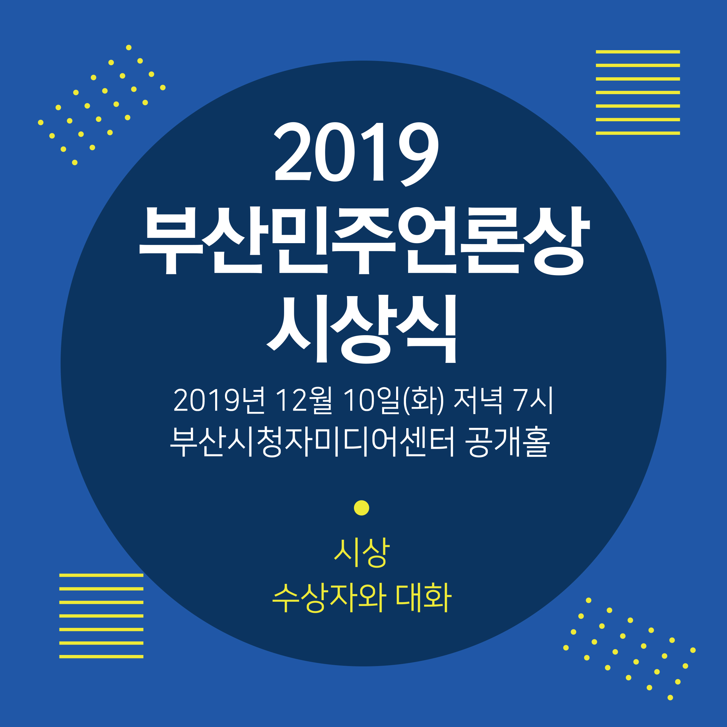 ‘부산민주언론’상 시상식이 12월 10일(화) 저녁 7시 부산시청자미디어센터에서 열립니다.