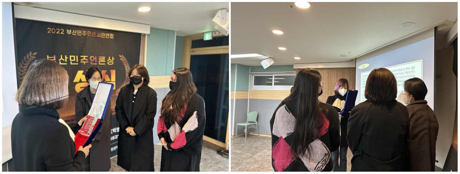 지난 9일, 2022부산민주언론상 시상식이 열렸습니다. 부산민주언론상은 2014년에 우리단체의 창립 20주년을 기념하여 지역언론의 좋은 보도와 프로그램, 언론인을 지역사회에 알리고 격려하고자 신설했습니다. 특히 지역의 시청자이자 독자인 부산민언련 회원의 투표로만 수상이 결정된다는데 큰 의미가 있습니다.