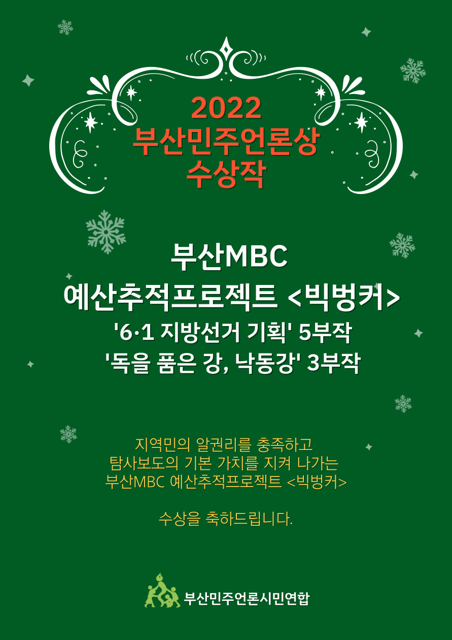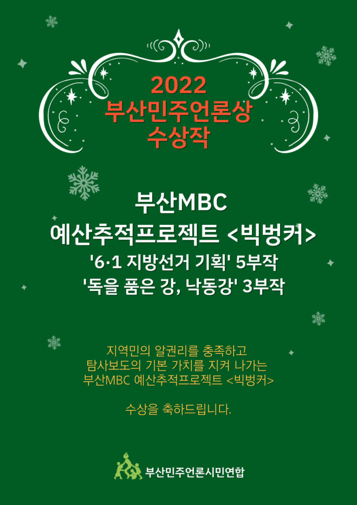 | 제6회 | 2019 | 부산MBC 예산추적프로젝트 <빅벙커> |