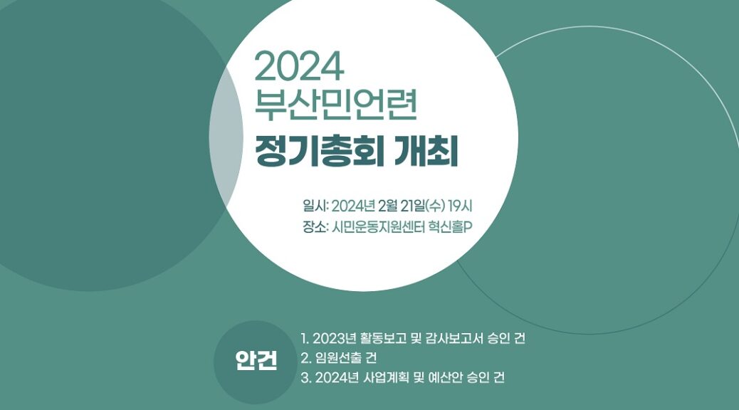 부산민언련 정기총회가 2월 21일(수) 저녁 7시, 부산시민운동지원센터에서 열립니다.