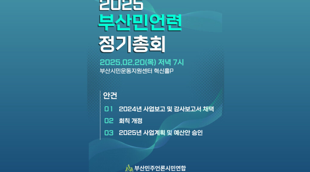 2025년 정기총회를 2월 20일(목) 저녁 7시, 부산시민운동지원센터 혁신홀P(건물 5층)에서 개최합니다.