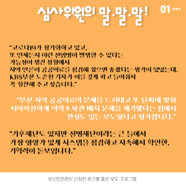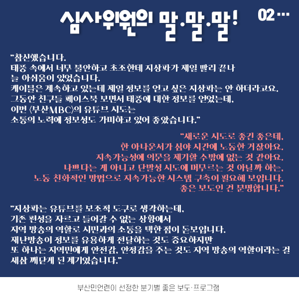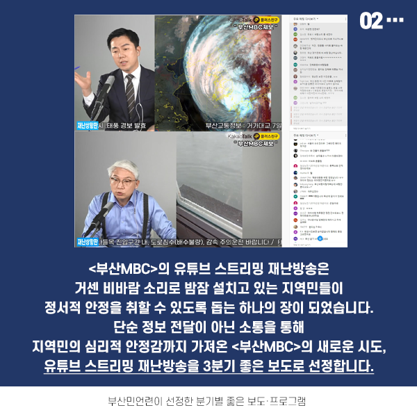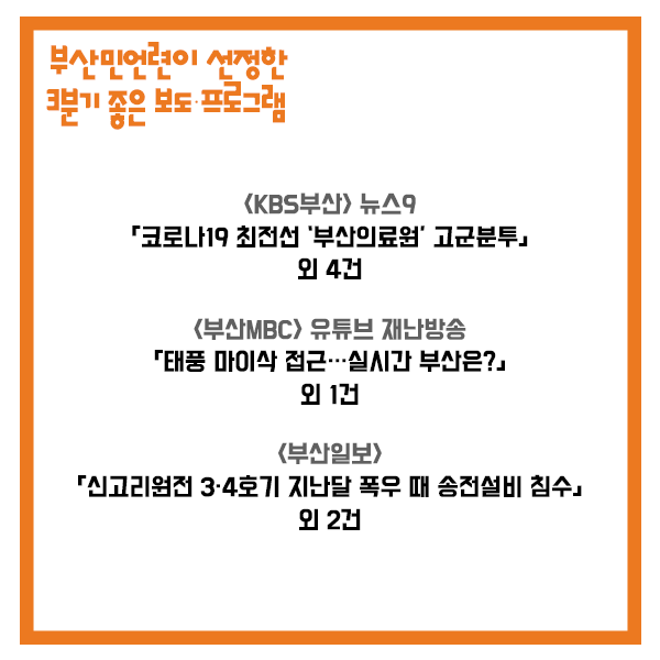 <부산민주언론시민연합>은 지역의 좋은 보도를 발굴하고 그 가치를 알리기 위해 분기별 좋은 보도·프로그램을 선정하고 있는데요. 이번 3분기에는 각종 재난 상황에서 지역 언론의 역할이 빛났던 보도들에 주목했습니다.