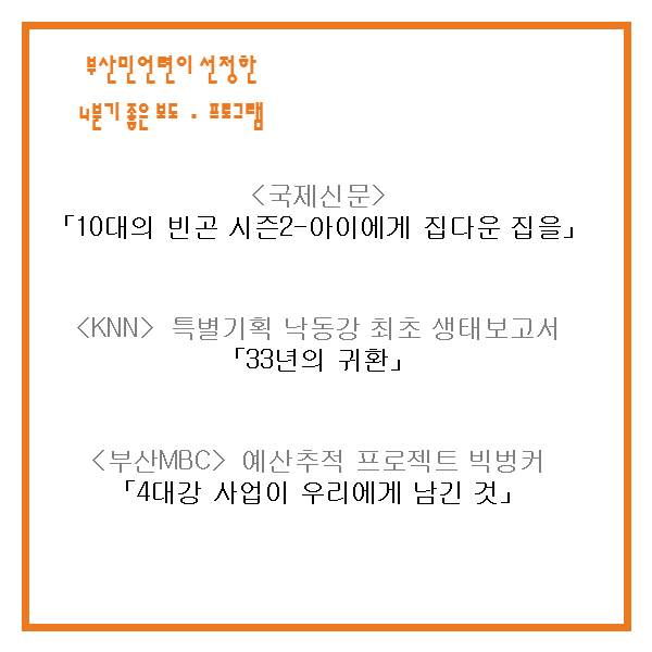 ■ 부산민주언론시민연합이 선정한 4분기 좋은 보도·프로그램을 발표합니다