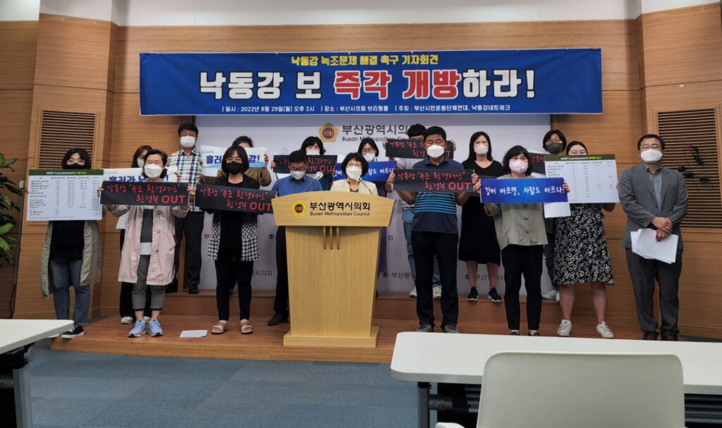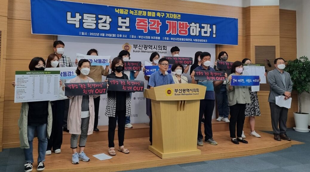 이에 우리단체가 참여하고 있는 부산시민운동단체연대와 낙동강부산네트워크는 8월 29일, 시의회에서 공동기자회견을 열고 ‘박형준 부산시장은 낙동강 보 수문 개방으로 녹조독으로부터 부산시민 생명과 안전을 보호하라!’고 요구했습니다.
