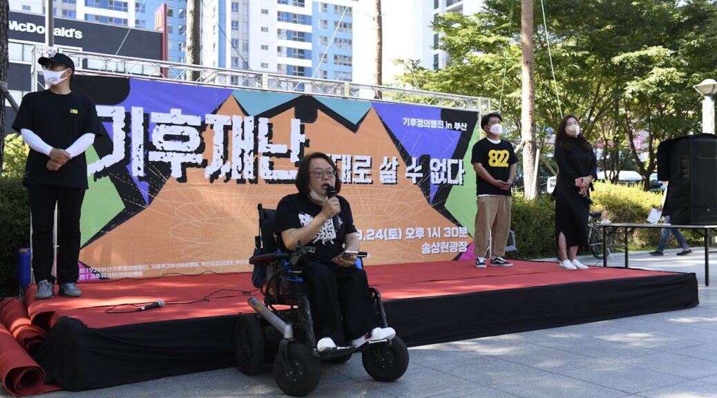 매년 9월 24~25일은 ‘세계 기후정의를 위한 행동의’날로 전세계 각지에서 기후행동이 진행됩니다. 부산 송상헌 광장에서도 9월 24일 환경단체를 비롯한 지역의 다양한 시민사회단체, 시민들이 모였고 우리단체도 참여했습니다. 송상헌 광장에서는 화석연료와 생명파괴 체제 중단, 불평등 종식, 무엇보다 부산의 목소리를 고리2호기 폐쇄를 요구했습니다. 그리고 농민, 장애인, 여성, 청소년 등 기후위기 당사자가 직접 단상에 올라 기후정의 실현과 정의로운 전환의 필요성을 말했습니다.