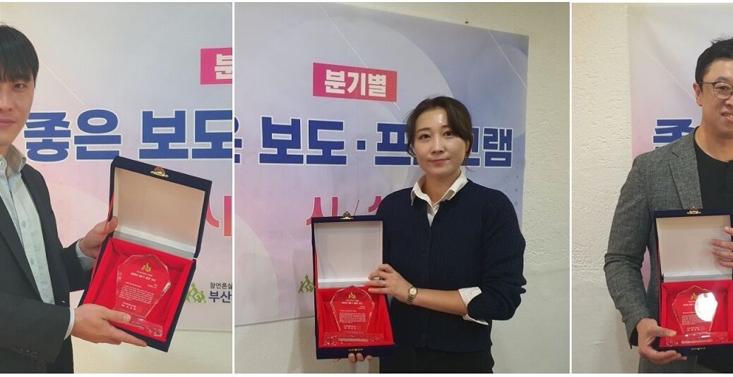 지난 11월 17일, 2025년 3분기 좋은 보도·프로그램 수상자인 KNN 하영광 기자, 부산MBC 조민희 기자, 부산일보 김백상 기자에게 상패를 전달했습니다.