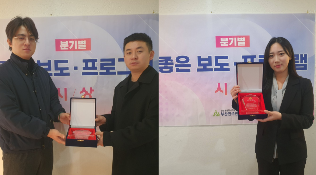 “무엇보다 부산민언련 회원분들께서 직접 좋은 보도로 평가해 주셨다는 점에서 큰 감동과 힘을 얻습니다. 이번 취재는 ‘요즘 같은 시대에 사람이 맞아 죽는 일이 벌어졌다’는, 도저히 묵과할 수 없는 사실에서 시작되었습니다.언론이 할 수 있는 일은 결국 멈추지 않고 계속해서 묻고 확인하는 것이라 생각합니다. 보도가 이어지면서 실제 수사와 기소 과정에도 유의미한 변화가 생기는 것을 지켜보았습니다. 한 번의 보도로 그치지 않고, 그 책임이 누구에게 있는지, 어떻게 물어지는지를 끝까지 감시하는 것이 저희의 소명임을 잊지 않겠습니다.” -부산일보 이우영·김준현 기자 수상소감