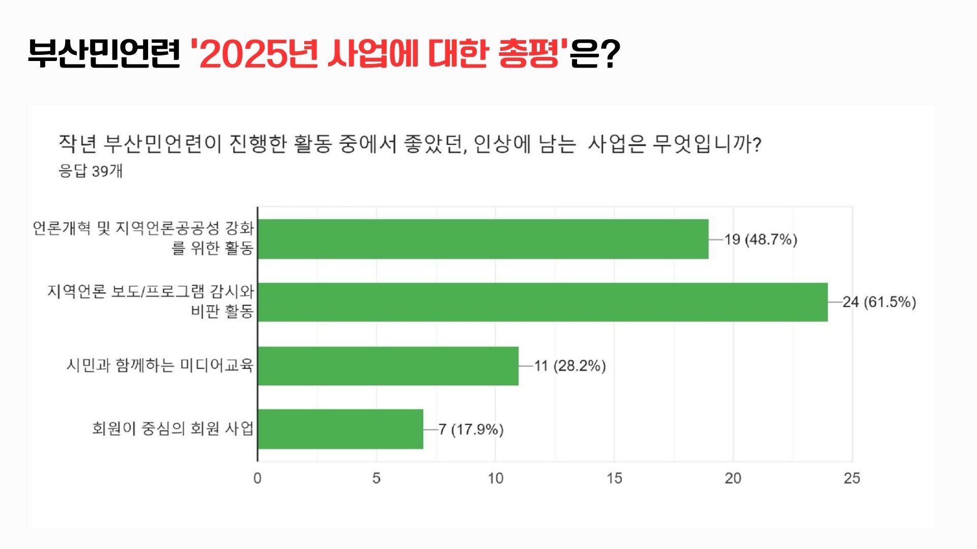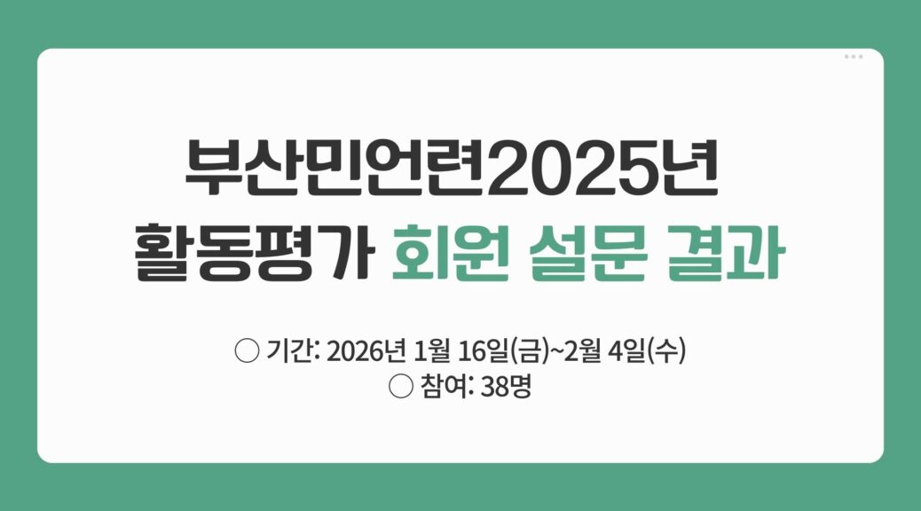 부산민언련이 정기총회를 앞두고 진행한 <2025년 활동 평가> 회원 설문 결과를 공개합니다.