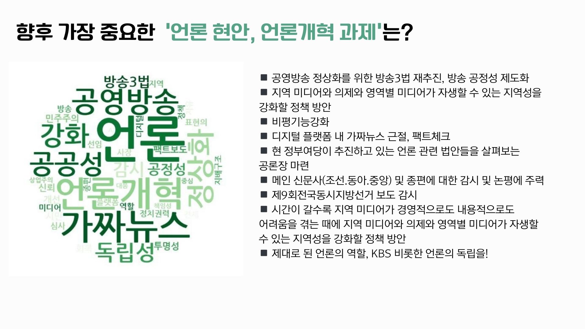 단순히 선거 국면에 맞춘 메시지보다 장기적이고 실효성 있는 정책 제안이 필요하다는 의견이 많았습니다.