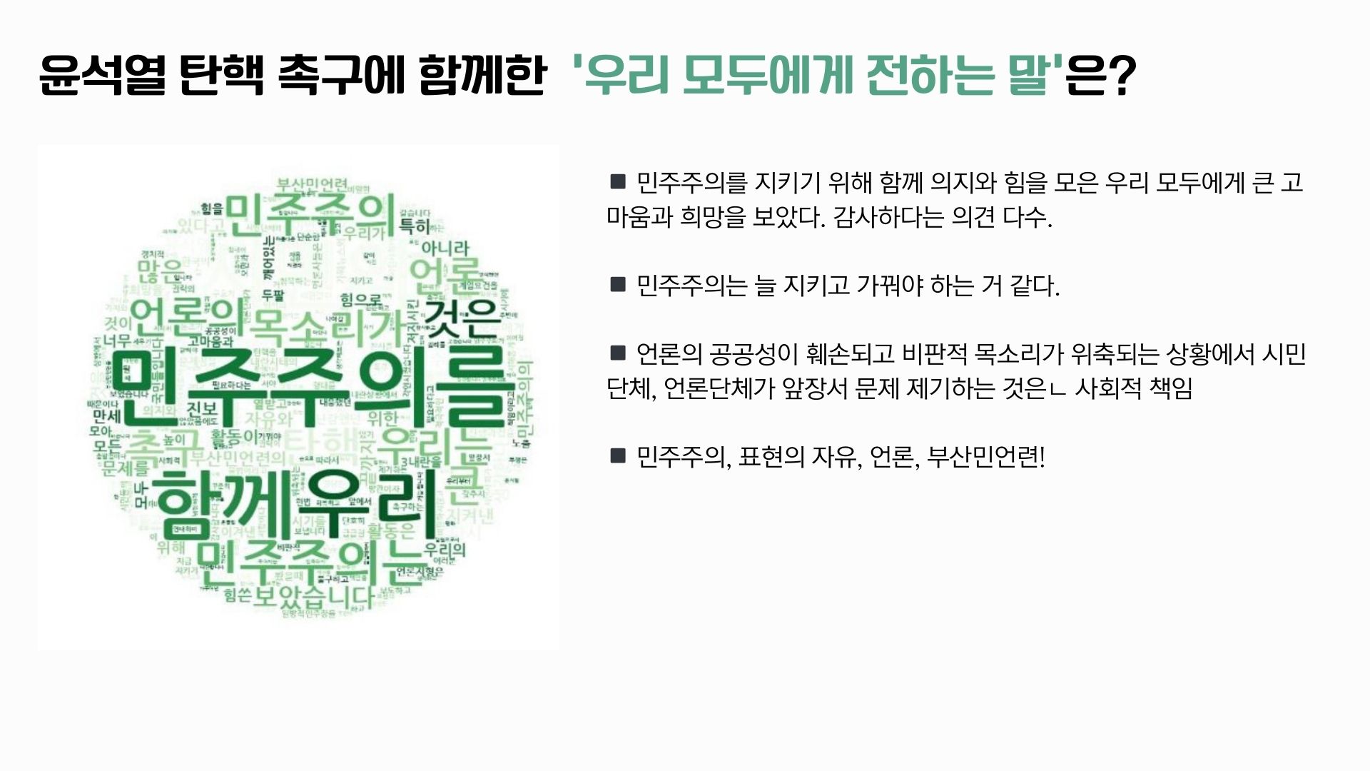“차별 없는 세상을 향한 단단한 연대” 부산민언련은 이번 모니터링 결과를 통해 언론이 지워버린 당사자들의 목소리를 다시 세우고, 언론이 제 역할을 할 수 있도록 감시하는 일이 얼마나 중요한지 다시금 확인했습니다. 단순히 갈등을 중계하는 보도가 아닌, 인권의 가치를 제대로 전달하는 언론 환경을 만들기 위해 부산차제연과 함께 끝까지 연대하고 행동하겠습니다.