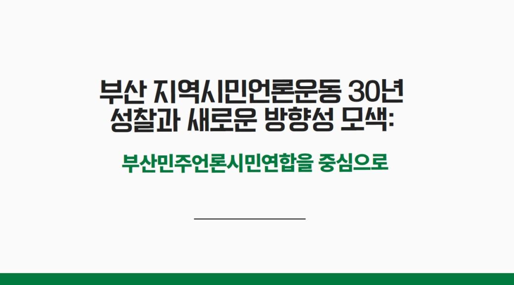 부산민주언론시민연합(이하 부산민언련)이 펼쳐 온 시민언론운동 30년 활동의 의미를 학술적으로 짚어본 논문 <부산 지역시민언론운동 30년 성찰과 새로운 방향성 모색: 부산민주언론시민연합을 중심으로>이 발표됐습니다.