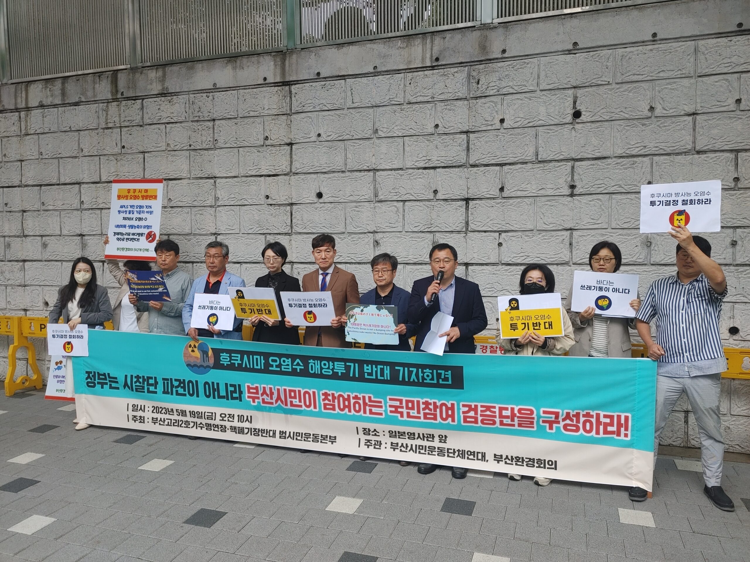 부산시민운동단체연대, 부산환경회의는 일본영사관 앞에서 5월 19일 ‘후쿠시마 오염수 해양투기 반대 기자회견’을 열었습니다.